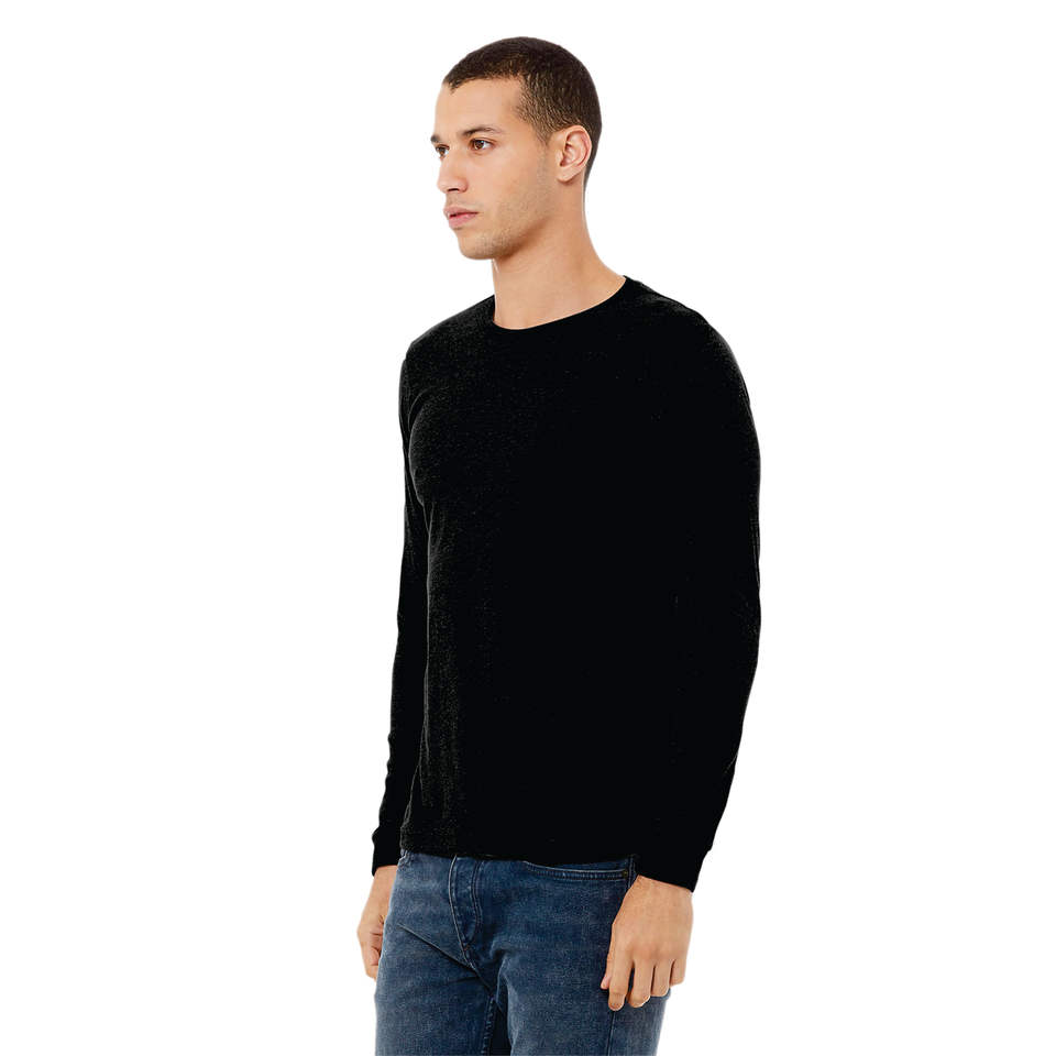 Camiseta de manga larga negra sólida Heather: 52% algodón peinado Airlume, 48% poliéster para un estilo atemporal