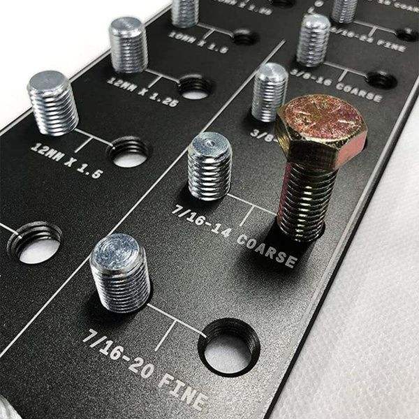 Solid Black Screw and Nut Thread Detector Gauge with Inch-Centimeter Scales Bolt Nut Identifier for Measuring Bolts and Nuts