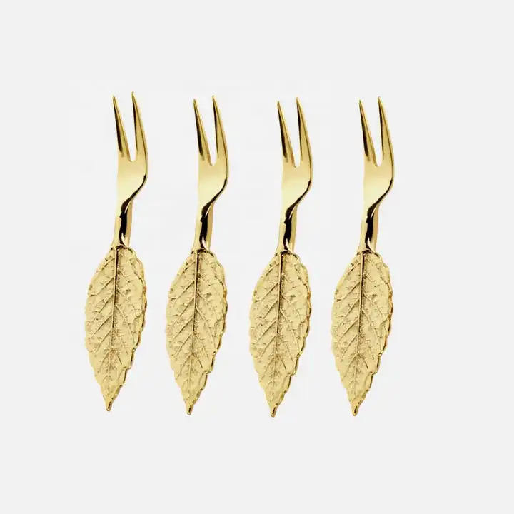 Mango en relieve chapado en oro de latón macizo con diseño único Juego de tenedor decorativo de acero inoxidable lindo