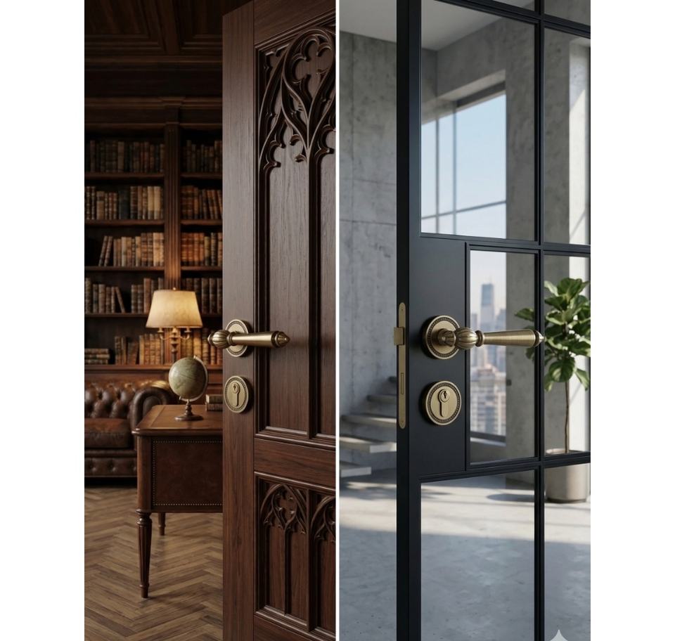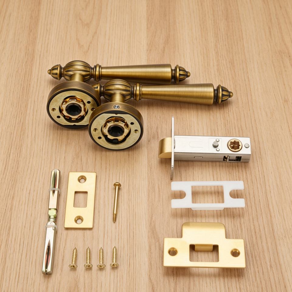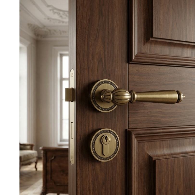 Manija de puerta interior de latón macizo con palanca estriada, sistema de cerradura de embutir con llave, herrajes de cobre puro para proyectos