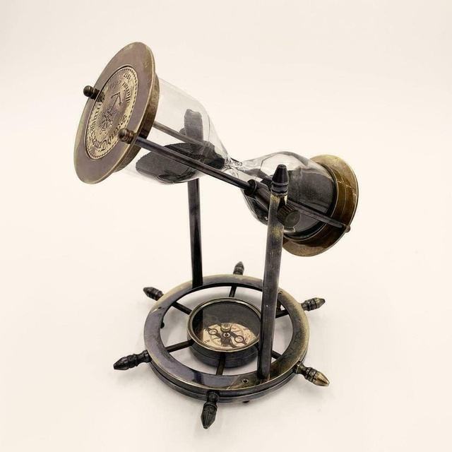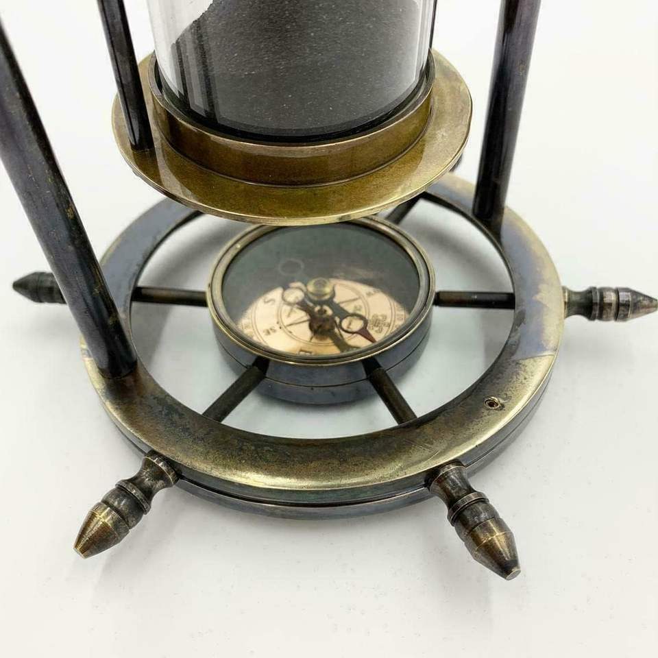 Reloj de arena marítimo de 8 pulgadas con base de latón macizo, giratorio y con temporizador, de madera y latón