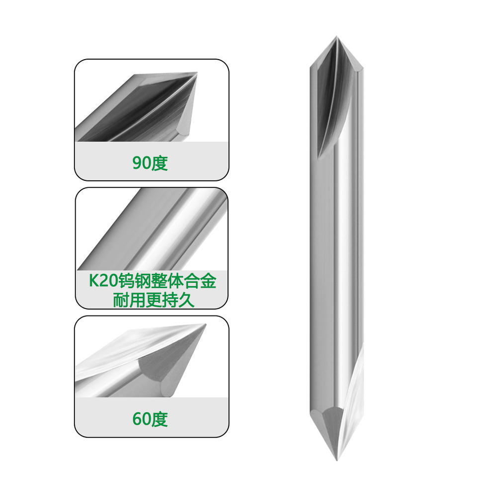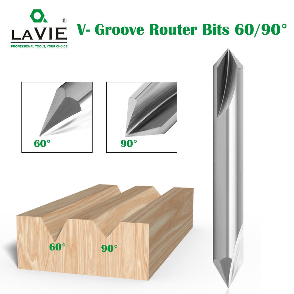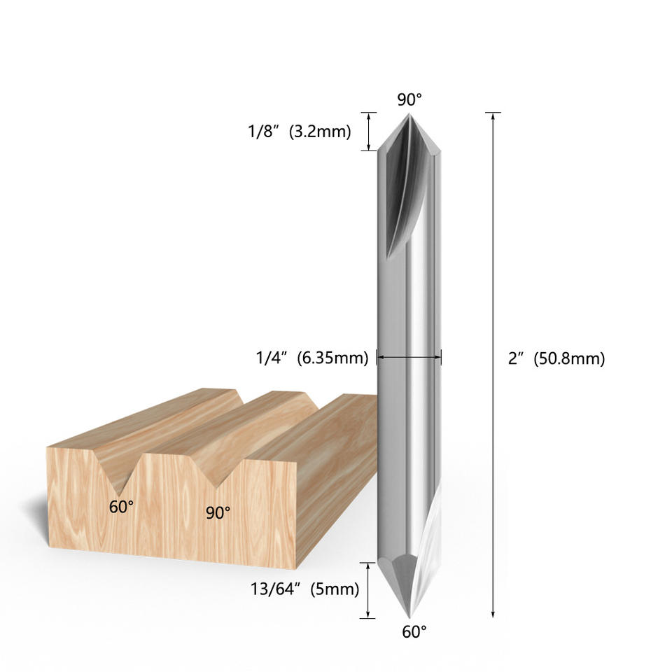 Broca de Carburo Sólido de Doble Punta, Vástago de 1/4, 60 Grados, 90 Grados, Herramienta de Ranurado en V para Trabajar la Madera