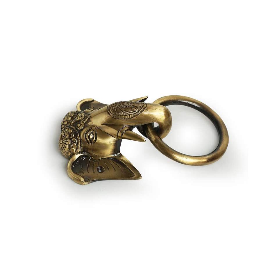 Diseño de cara de elefante fundido sólido, aldaba de latón fundido de puerta, timbre de puerta, tirador decorativo para el hogar, suministros para puertas delanteras al aire libre