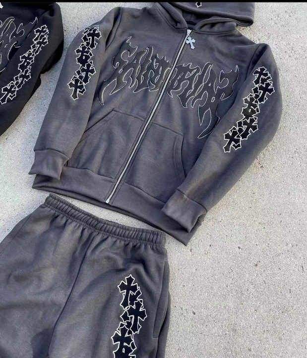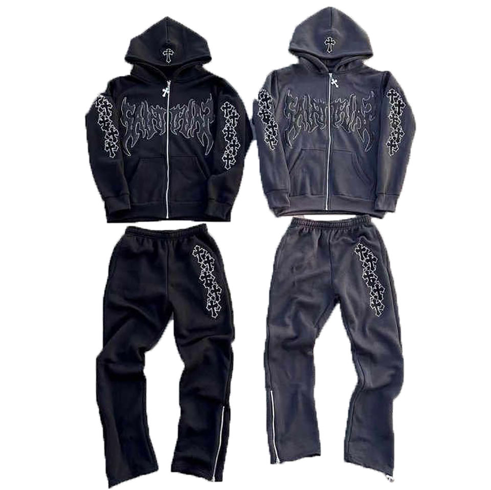 Conjunto de chándal de algodón 100% para hombre con lavado ácido de Color sólido, chándal de otoño e invierno, pantalones de chándal informales con cremallera, conjunto de 2 piezas con capucha