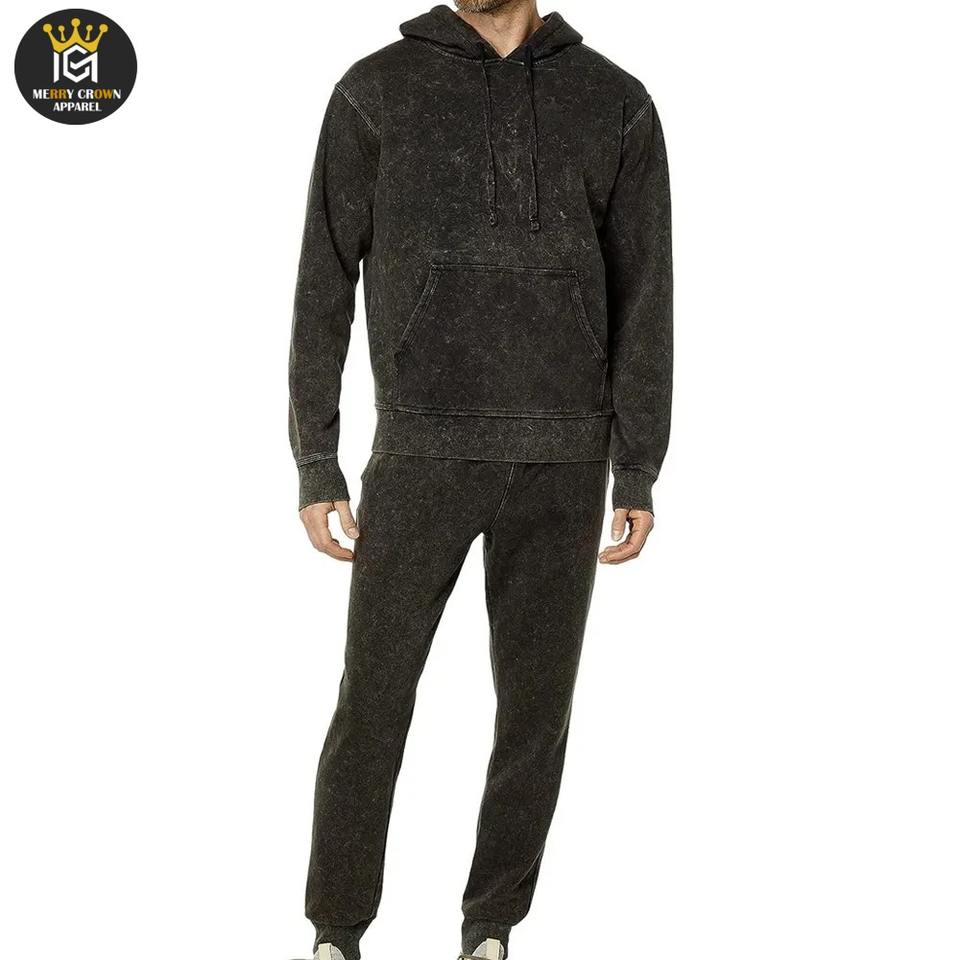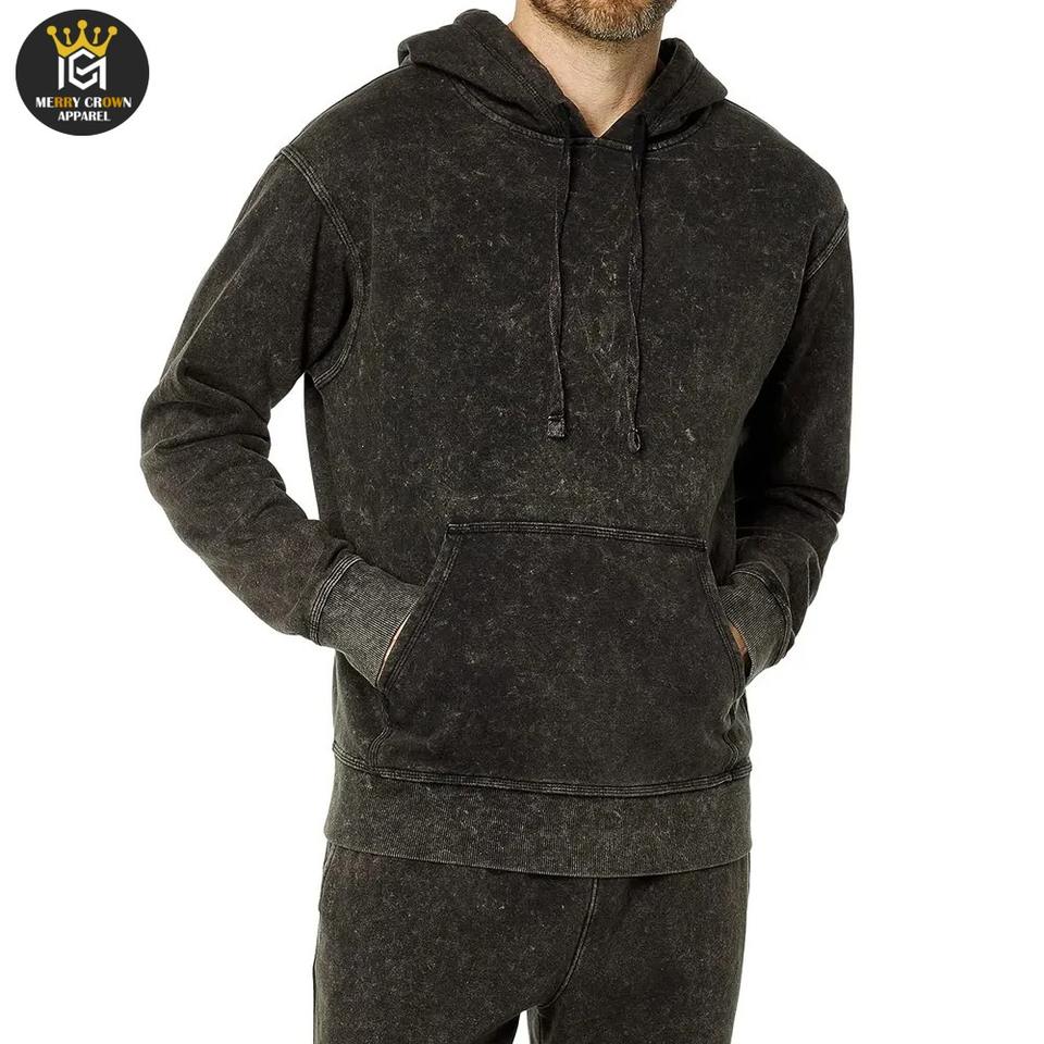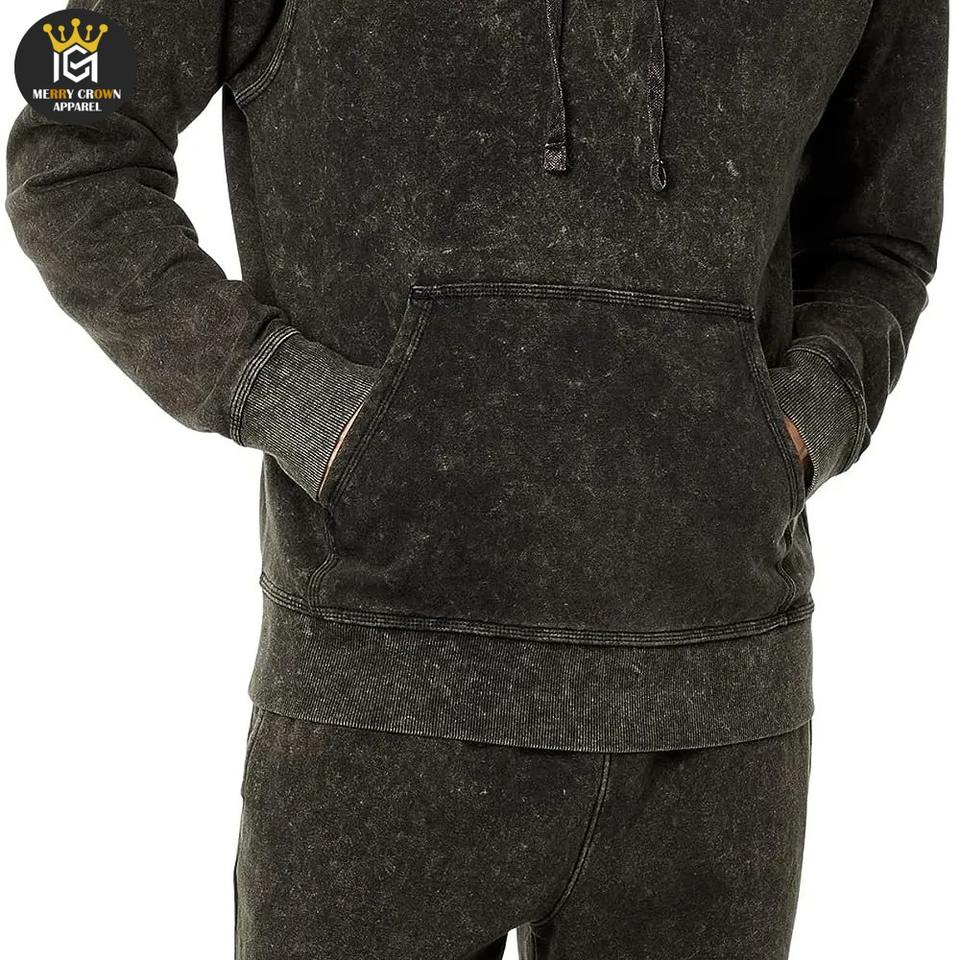 Chándal de lavado ácido de color sólido personalizable de alta calidad para hombre estilo de invierno con cuello con capucha transpirable y cómodo
