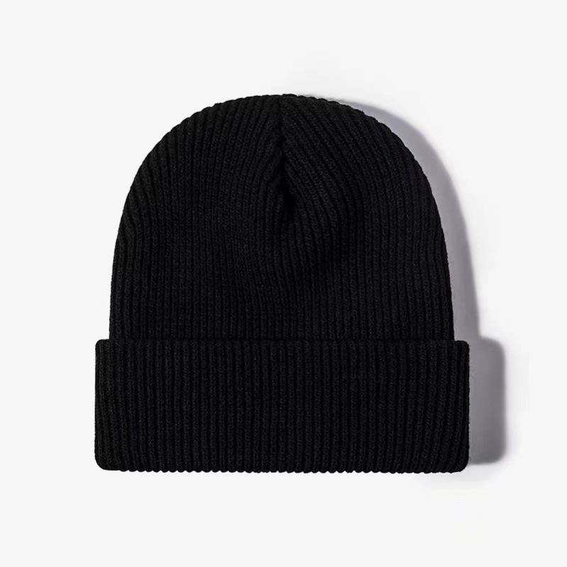 Gorro de punto con puños cálidos de invierno acanalado liso en blanco de Color sólido Gorro acrílico unisex con logotipo personalizado