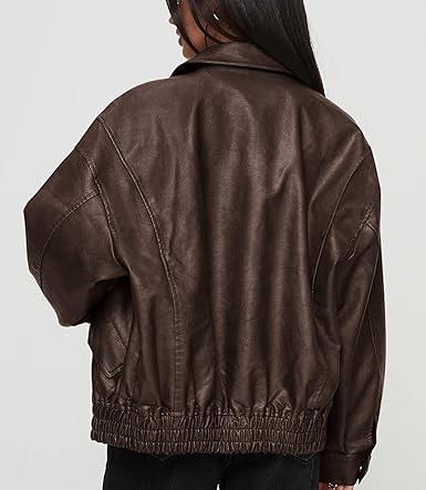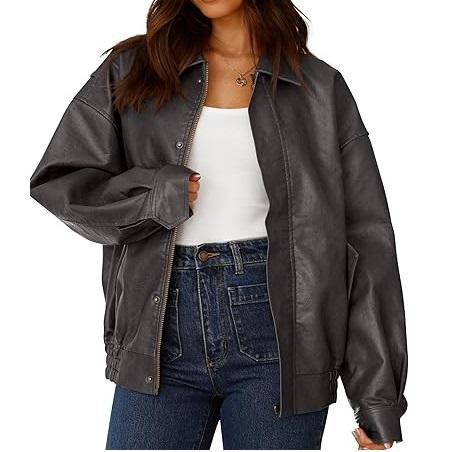 Chaquetas de Mujer de Cuero Genuino, Color Sólido, Talla Grande, Corte Holgado, Pedido al por Mayor, Ropa de Mujer, Prendas Exteriores Transpirables para Invierno