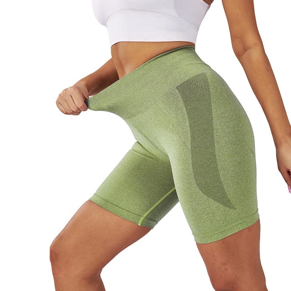 Pantalones cortos de Yoga sin costuras, Color liso, realce de glúteos, cintura alta, para gimnasio y Fitness