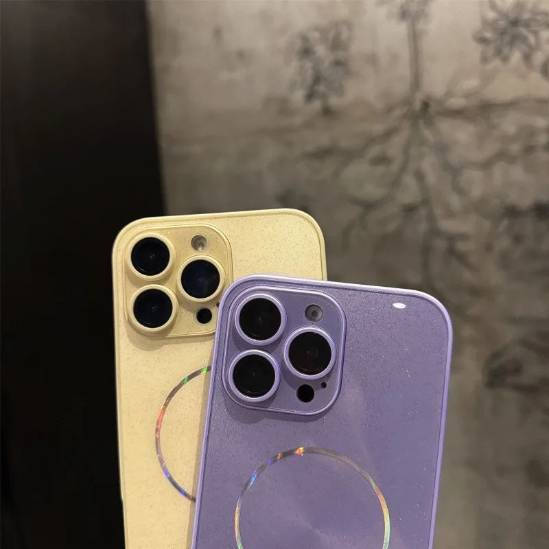 Funda de teléfono de Color sólido Bling Slim Magnetic Ring Aurora Premium para iPhone 12 13 14 15 Pro 16 Plus 17 Pro Max High Texture Cover