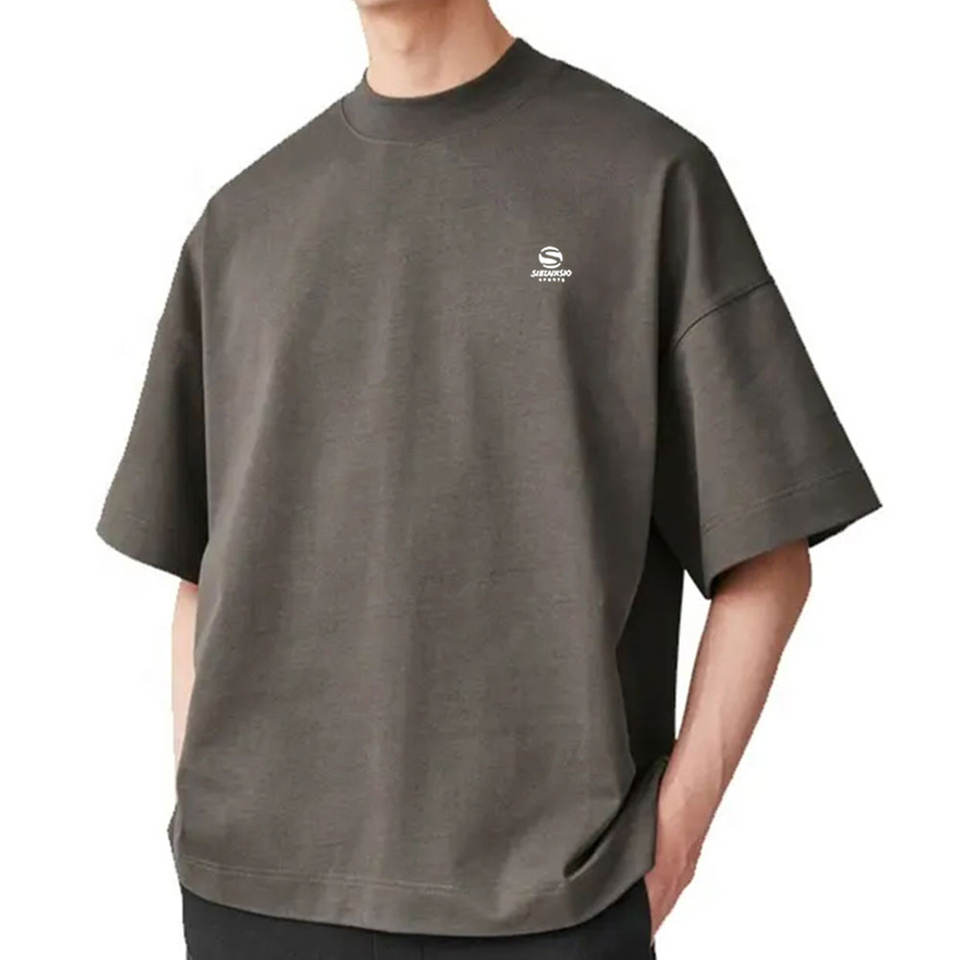 Camiseta de Hombre de Color Sólido, Estilo Cuadrado, 100% Algodón, Cuello Acanalado, Hombros Caídos, Estilo Urbano, Vintage, Transpirable, 300 Gramos