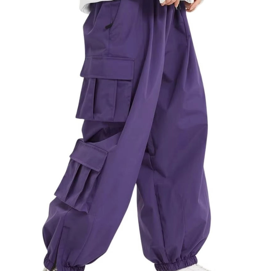 Pantalones de esquí para hombre a precio barato de color sólido pantalones de esquí sueltos transpirables impermeables impresos con logotipo personalizado
