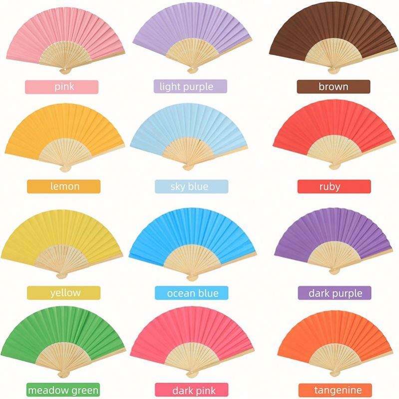 Abanico Plegable Personalizado de Color Sólido para el Verano, Arte Folclórico, Decoración del Hogar de Bambú, Tallado, Regalo para Bodas, Fiestas y Bailes, Estilo Impreso