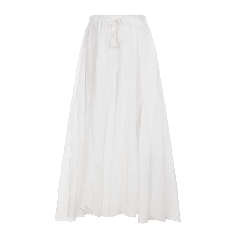 Falda Fluida de Color Liso con Cintura Natural y Corte en A, Larga hasta el Suelo, con Detalle de Abertura, para Mujer, Ideal para Verano y Resort, Lavable, En Stock