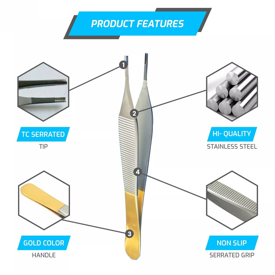 Pinzas de Disección Adson Marrón de Grado Médico de Alta Calidad, Color Sólido, 11 1x2 Dientes, Manuales, Acero Inoxidable Alemán para Cirugía