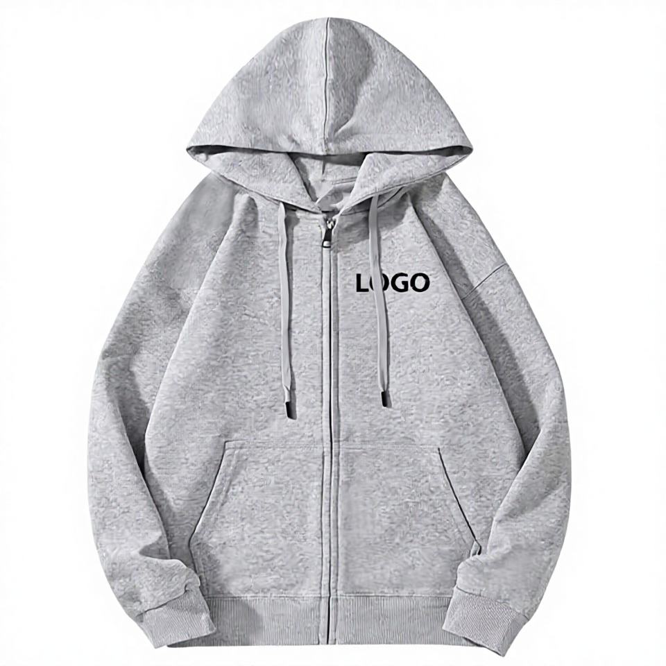 Sudadera con capucha de color liso al por mayor con LOGO, tipo cárdigan con cremallera para hombre y uniformes de clase, pedidos de sudaderas con cremallera para hombre