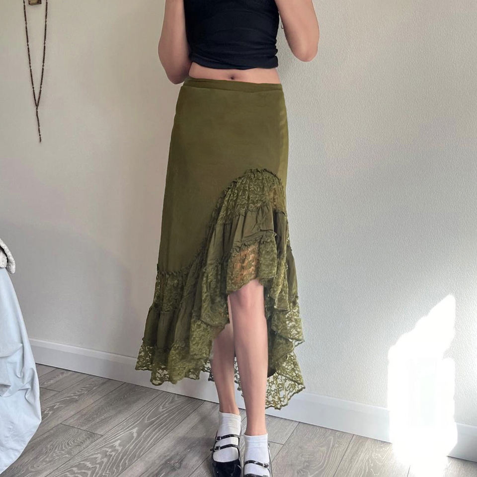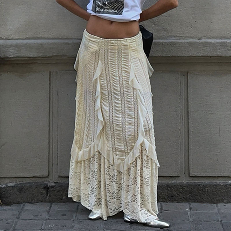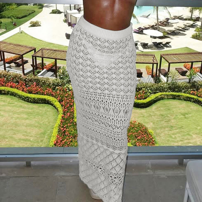Falda Larga de Verano para Mujer, Tejido de Punto de Color Sólido, Transpirable, con Encaje Natural, Estilo Chic, Precio Bajo al por Mayor, Estilo Vacaciones en la Playa, Transparente