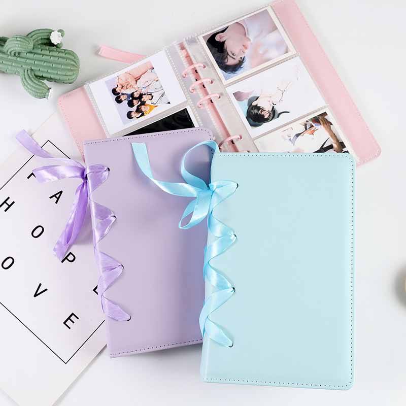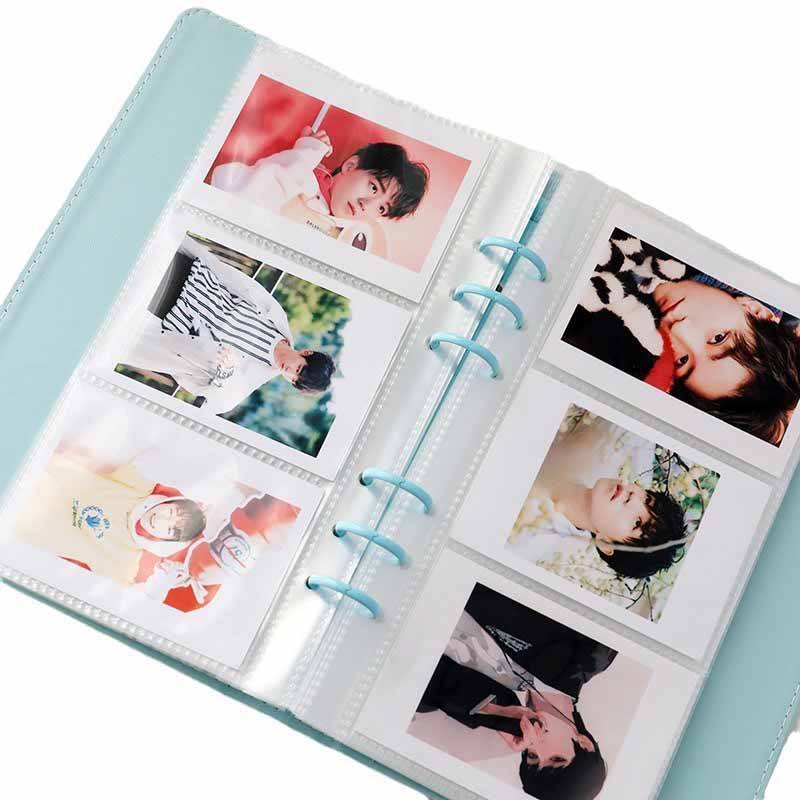Álbum de fotos de seguimiento de estrellas de hojas sueltas de cuero de Color sólido para almacenamiento de tarjetas pequeñas para colección y organización de tarjetas de visita