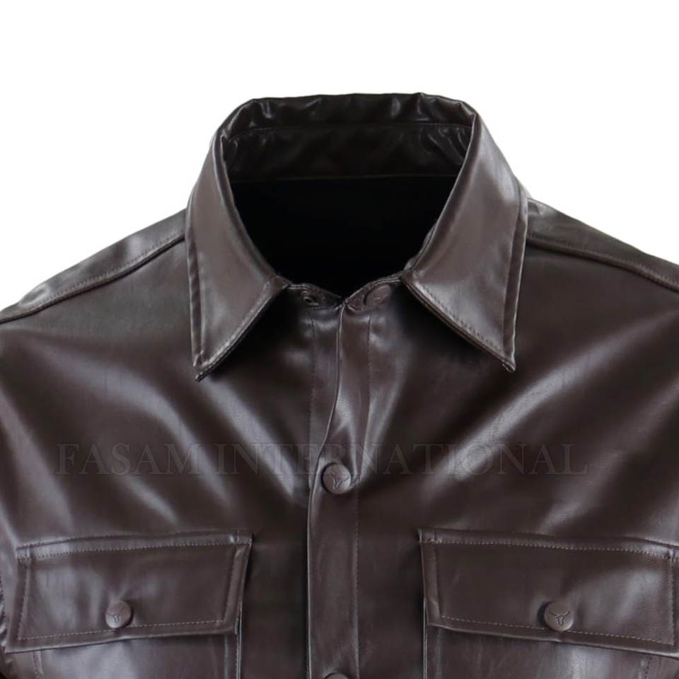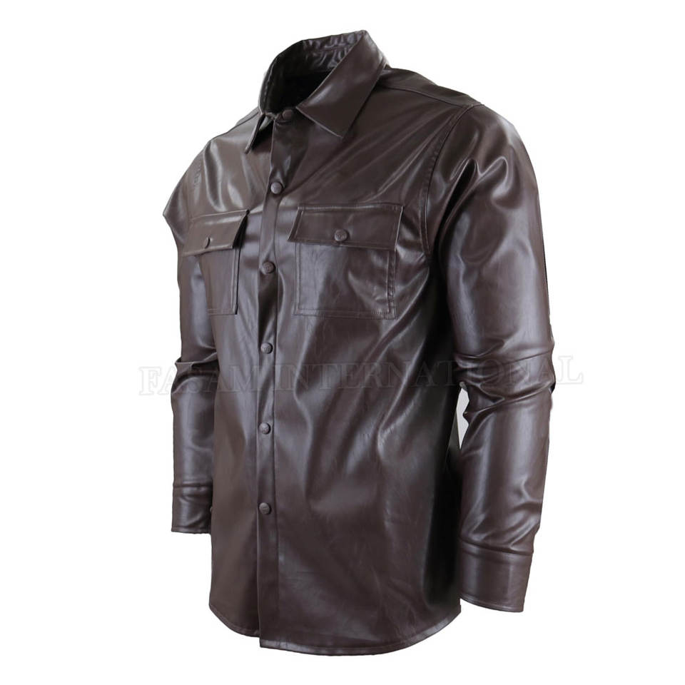 Camisas de cuero de manga larga de color sólido para hombre, camisas de cuero personalizadas, camisas de cuero de nuevo estilo