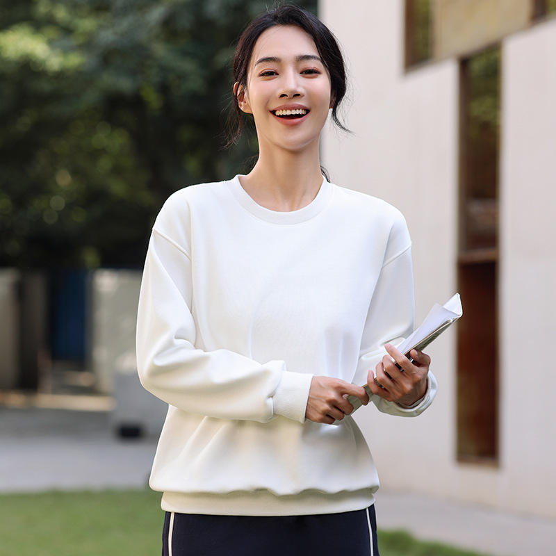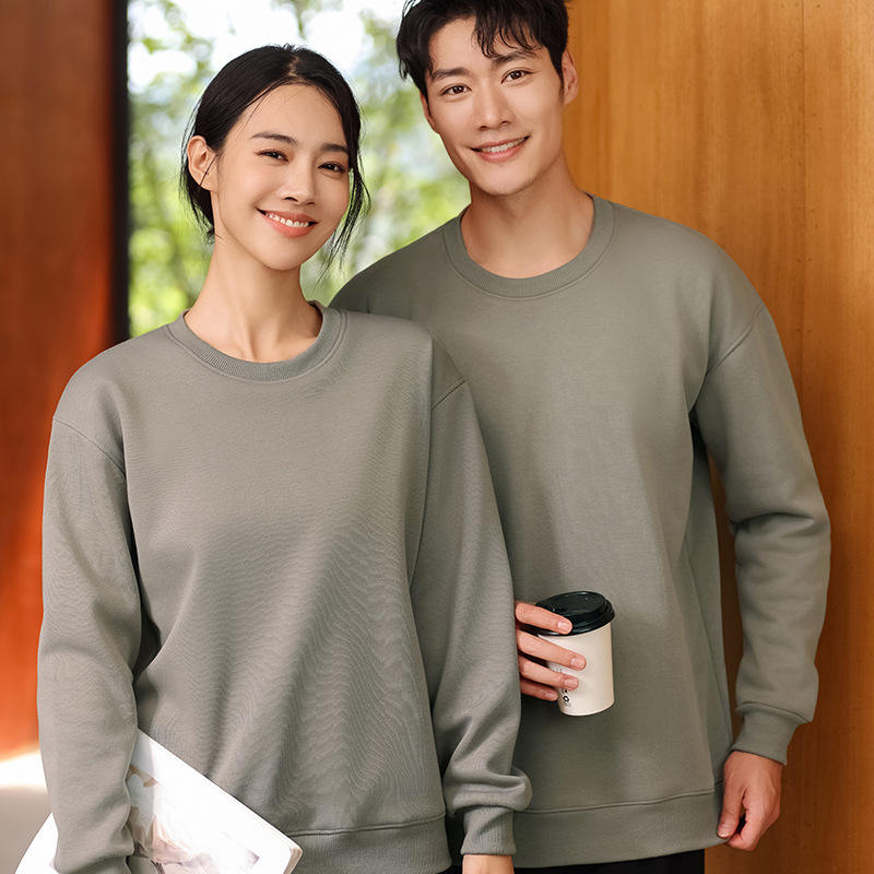 Sudadera de Cuello Redondo Holgada de Color Sólido, 51-70% Algodón, Ropa de Trabajo Diaria