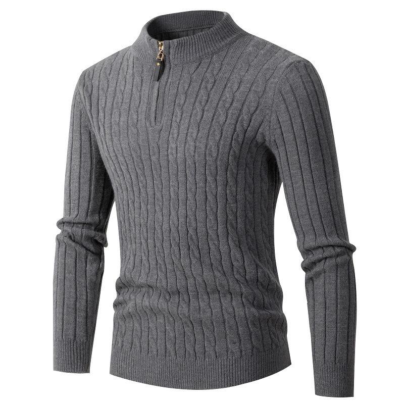 Suéter de Punto para Hombre de Color Sólido, Ropa de Punto de Otoño Invierno, Cuello Alto con Cierre, Sudadera de Manga Larga para Hombre