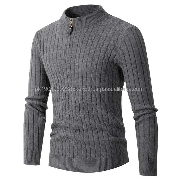 Suéter de punto de Color sólido para hombre, prendas de punto de otoño e invierno, cuello alto de manga larga con cremallera, jersey para hombre, sudadera, prendas de vestir exteriores