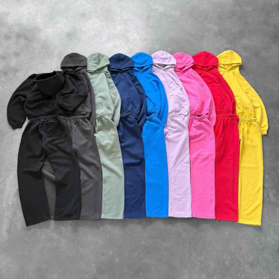 Chándal DTG con estampado en relieve de nuevo estilo de Color sólido, conjunto de pantalones de chándal y sudadera con parche de angustia, superventas, chándales para hombre