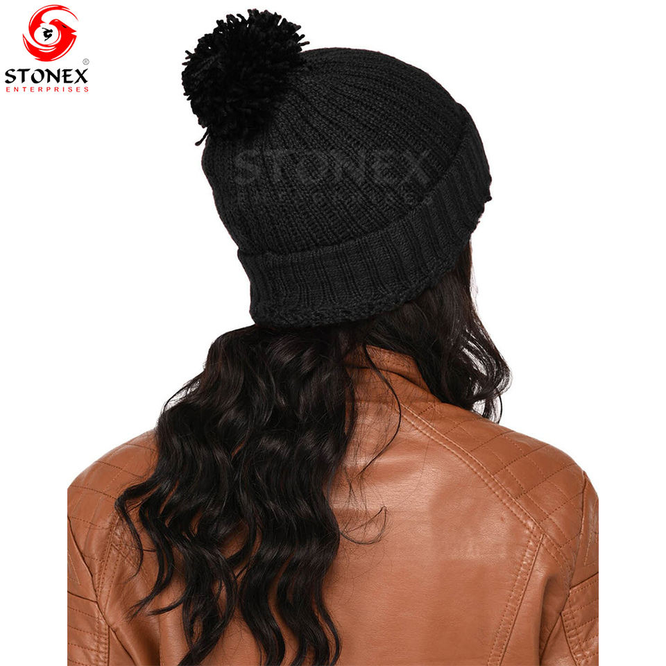 Gorros de invierno personalizados cálidos para exteriores de Color sólido, gorros de calavera para mujer, gorro con logotipo personalizado para mujer