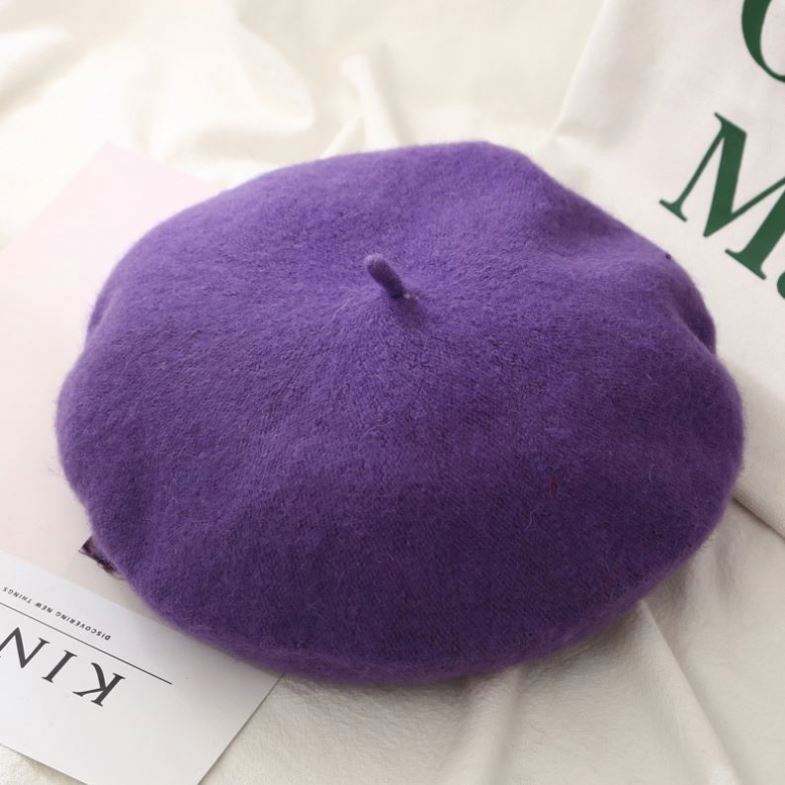 Boina de Lana Lisa de Color Sólido, Envío Directo, Gorros de Invierno, Boina Francesa para Mujer
