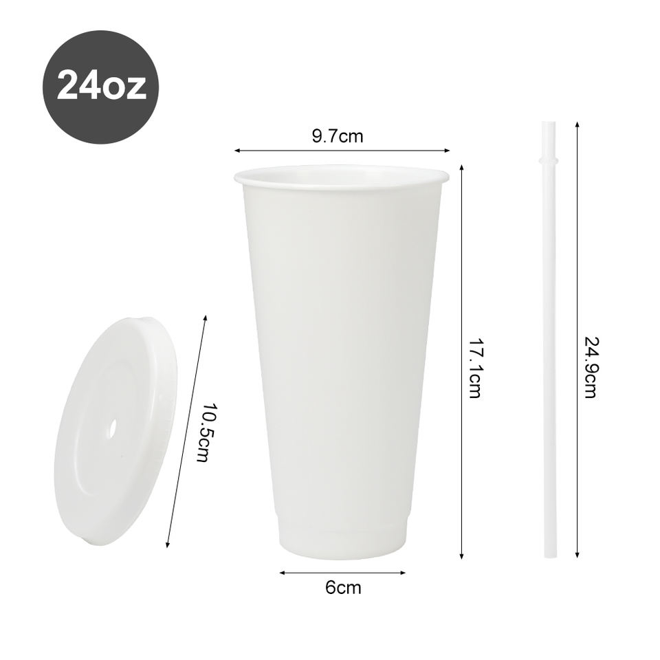 Vaso de Plástico Reutilizable de un Solo Pared y Color Sólido de 24oz (710ml) para Bebidas Frías, Café, con Tapa y Pajita