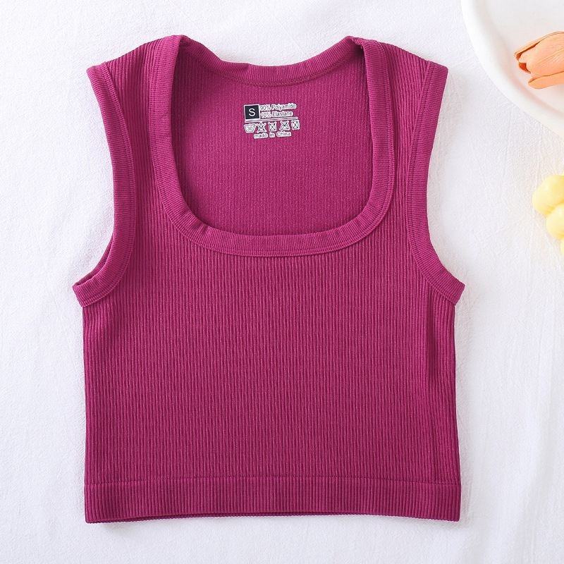 Top Corto Deportivo de Tirantes con Cuello Cuadrado, Color Sólido, Ajustado, Transpirable y de Secado Rápido para Running y Fitness