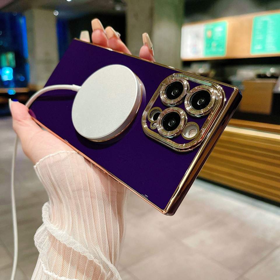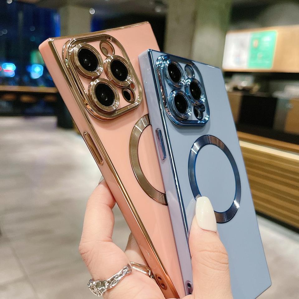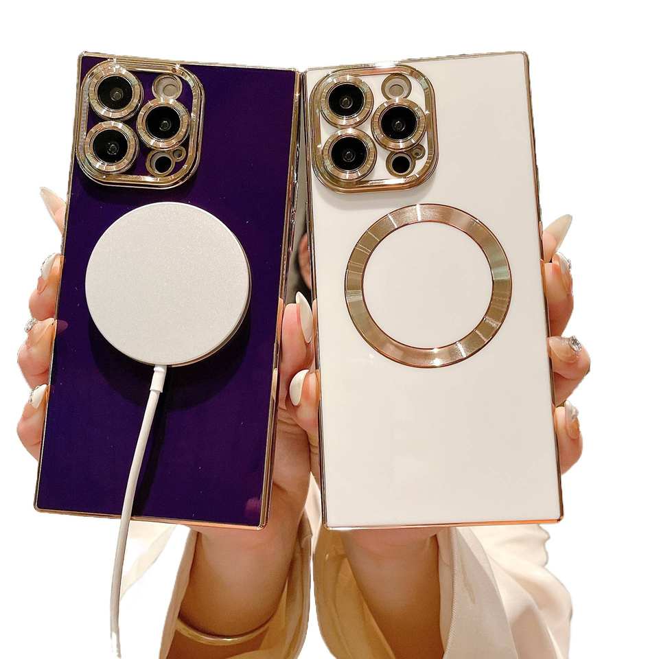 Funda de teléfono IPhone15 galvanizada cuadrada de color sólido con patrón de CD, protección anticaída magnética 13/11/14