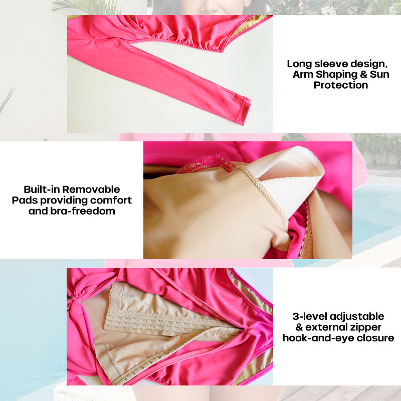 Bañador Moldeador de Una Pieza y Manga Larga en Triángulo de Color Sólido para Vientre Plano