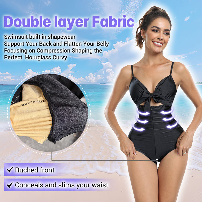 Traje de Baño de Una Pieza con Cuello en V Triangular de Color Sólido, Control de Abdomen y Cintura, Moldeador, Bikini para Mujer