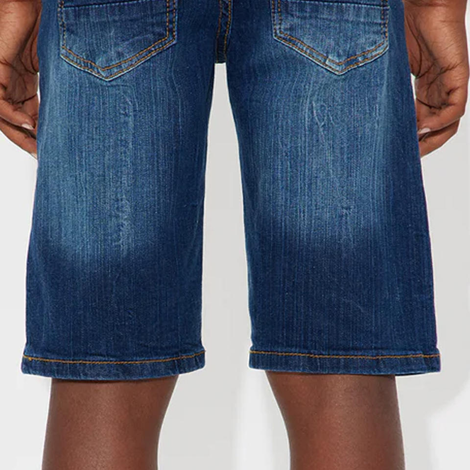 Pantalones cortos de mezclilla clásicos para niños, de color sólido, con bolsillos y logotipo, de corte recto y costuras impecables, hechos con material de alta calidad.