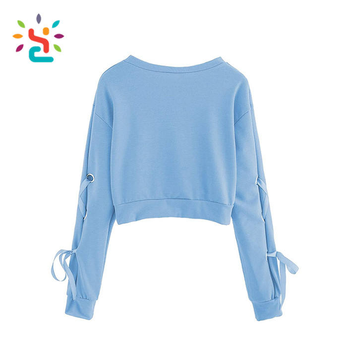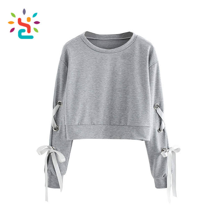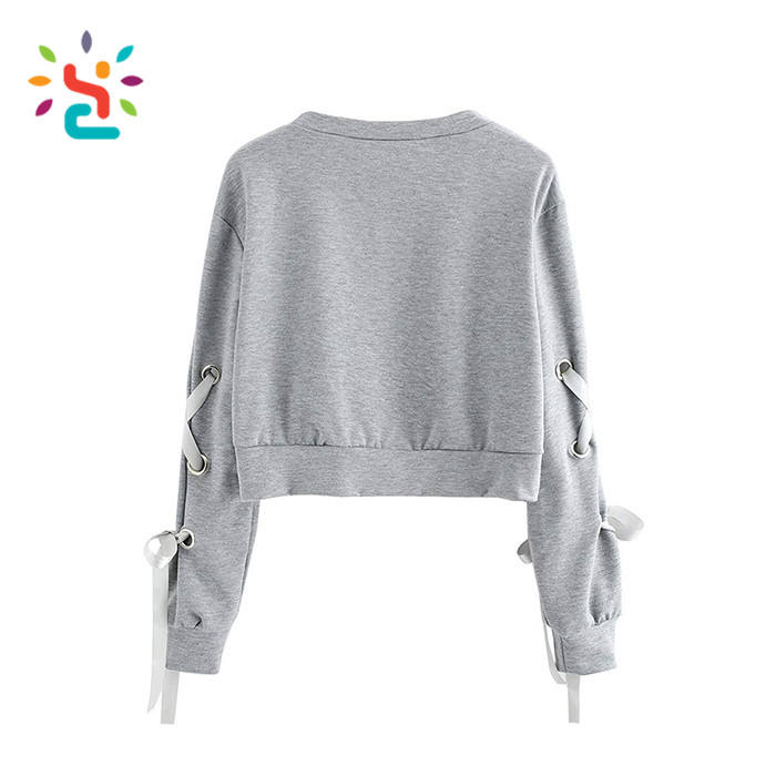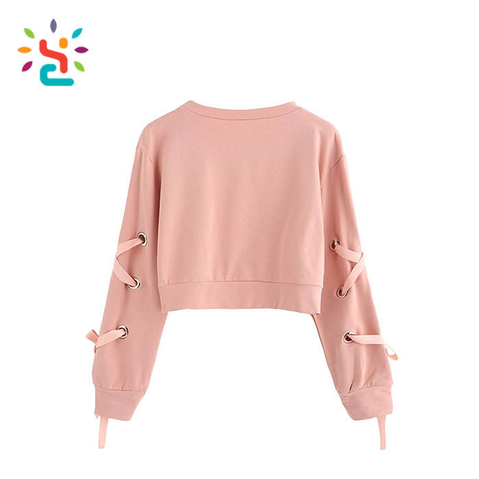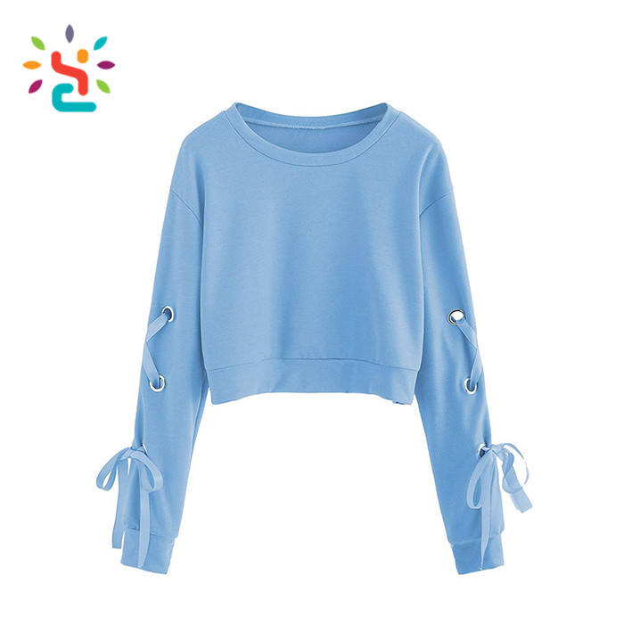 Sudadera Corta de Moda para Mujer, Color Sólido, Manga Larga, con Cordones y Ojales