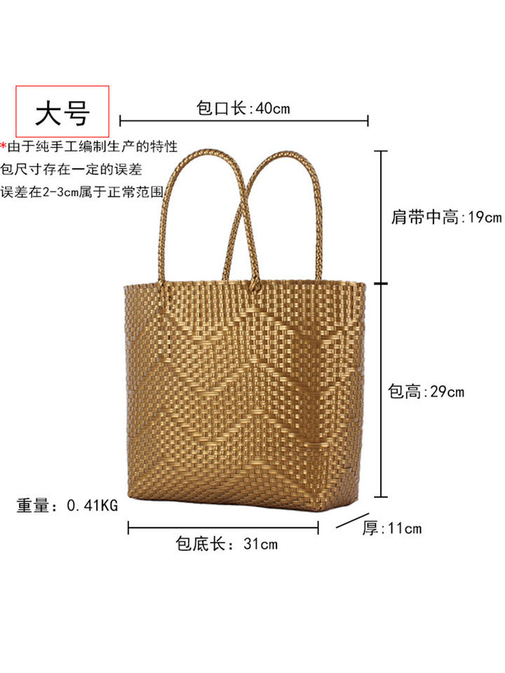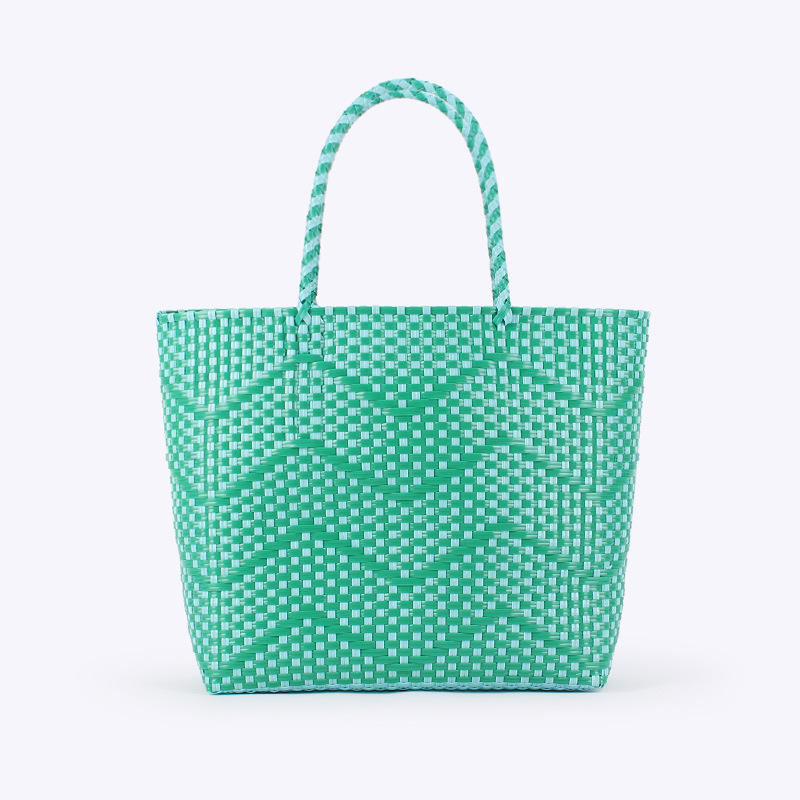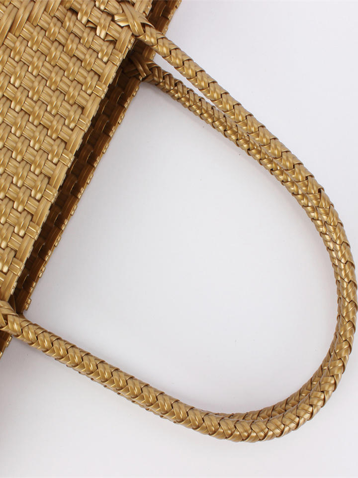 Bolso de Compras Cuadrado de Gran Capacidad, Tejido en PVC de Color Sólido, Tipo Tote, con Doble Asa de Hombro y Cierre Abierto, Tanjing