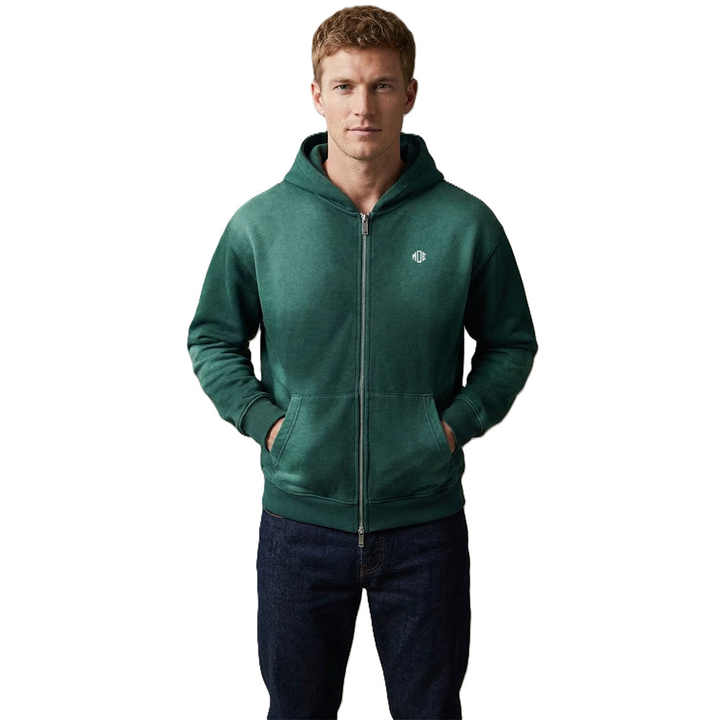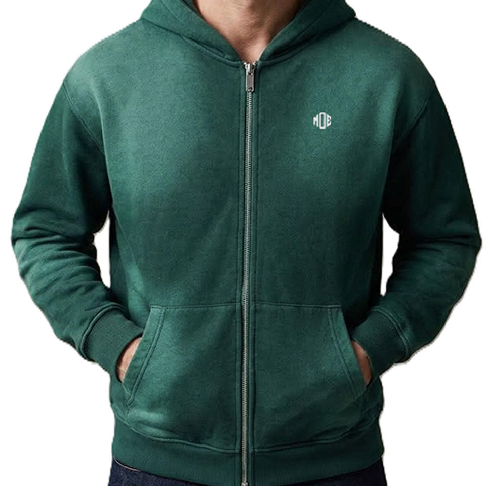 Sudadera con capucha de color liso con cremallera para hombre, de algodón y forro polar, corte regular, estilo urbano, verde. Proveedor mayorista de sudaderas.