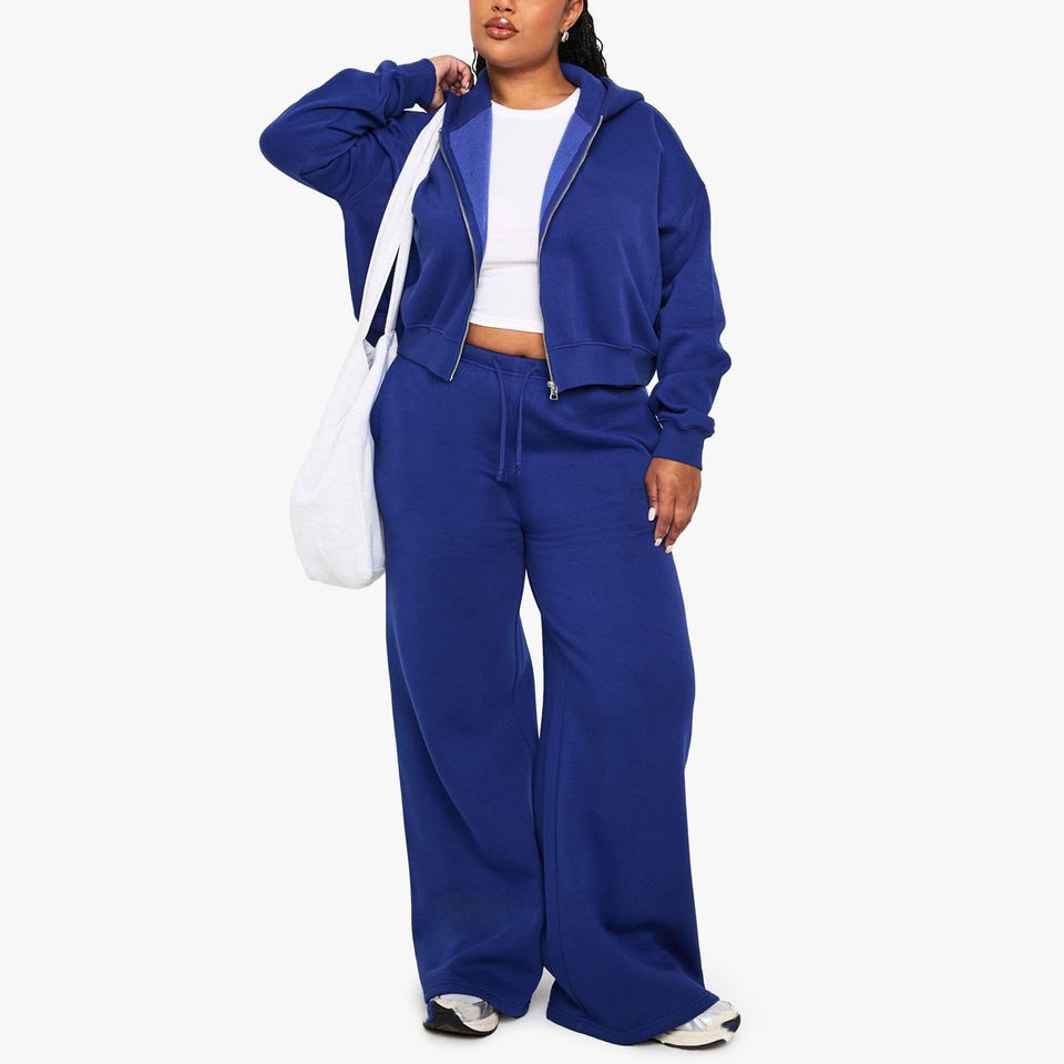 Conjunto Deportivo de Dos Piezas para Mujer, Talla Grande, con Bordado de Encaje, 100% Algodón, Sudadera con Capucha y Pantalones Deportivos
