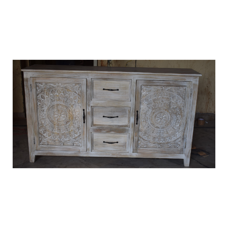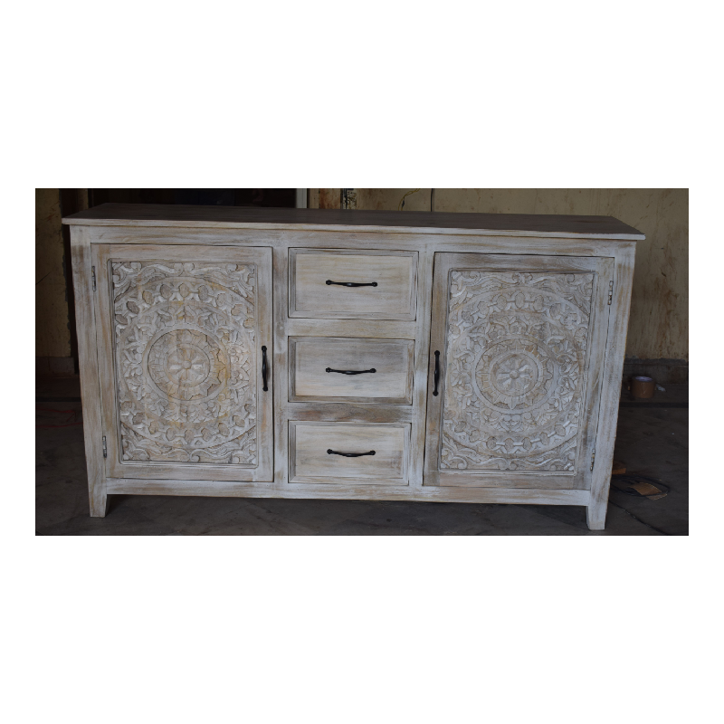 Product Name:Wooden 3 Drawer 2 Carved Door Cabinet Sideboard