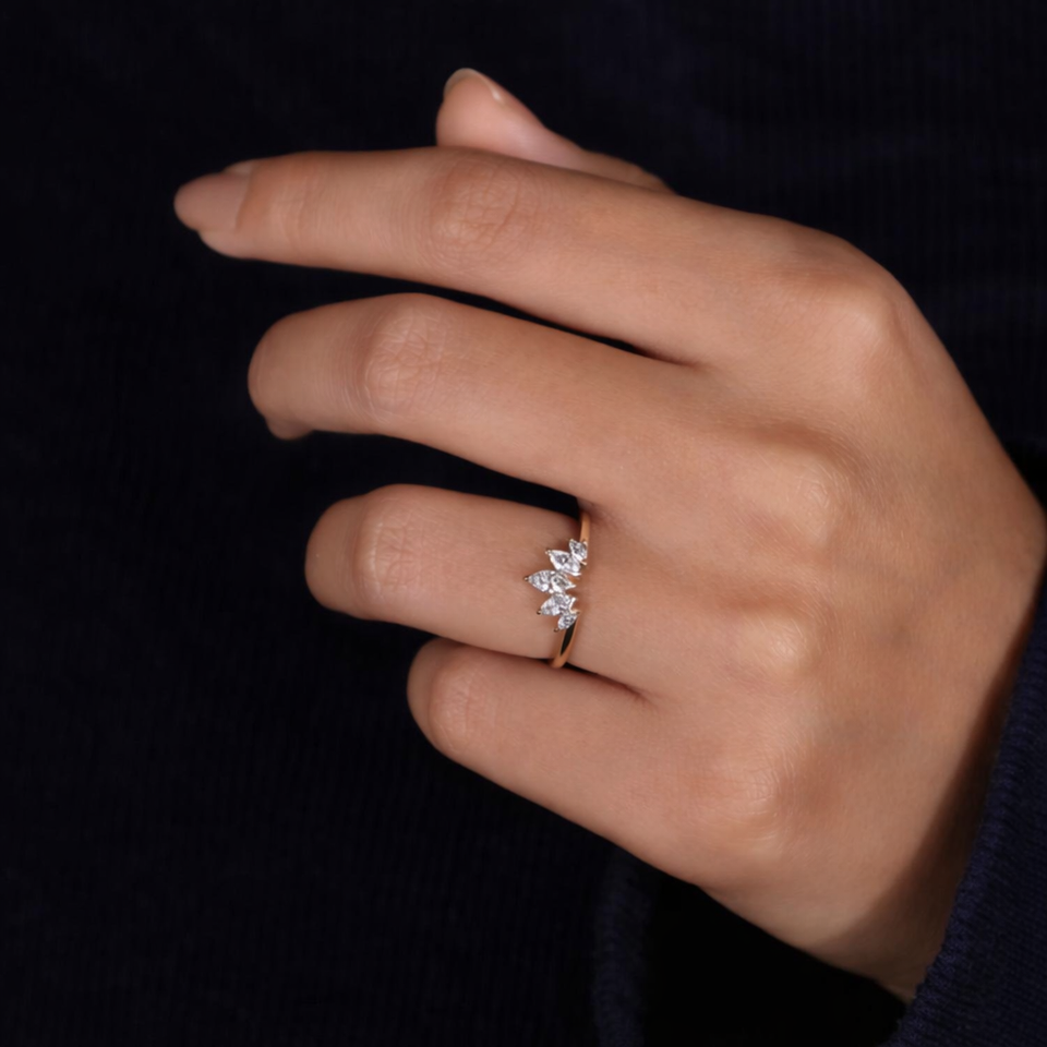 Anillo de Oro Sólido de 14K, Oro Amarillo, Diamante Cultivado en Laboratorio, Corte Marquesa, Anillo de Boda, Anillo Apilable para Novia, Anillo de Promesa Delicado