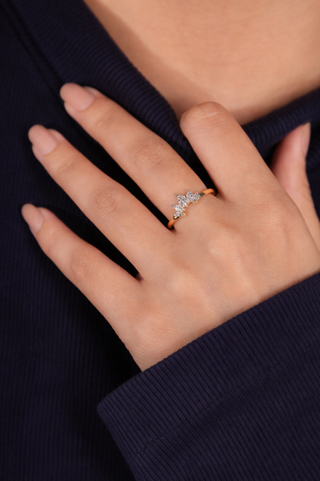 14K Gold Marquise Tiara Crown Stackable Wedding Band