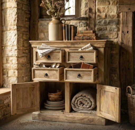 Mueble de Almacenamiento con Múltiples Cajones de Diseño Tradicional en Madera de Mango Sólida, Aparador Duradero que Ahorra Espacio para Sala de Estar, Muebles para el Hogar