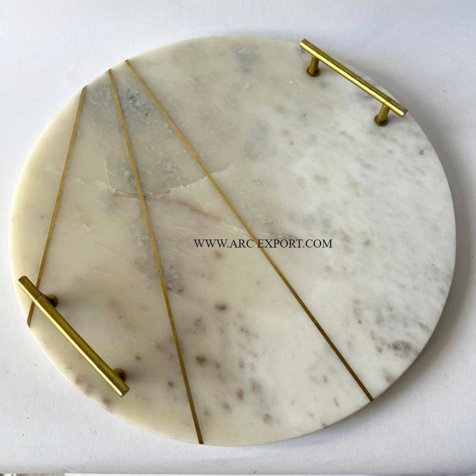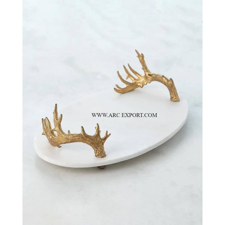 Bandeja para servir comida ovalada de Color blanco de mármol sólido con asas de diseñador Bandeja de comida decorativa para el hogar de gran tamaño hecha a mano más vendida
