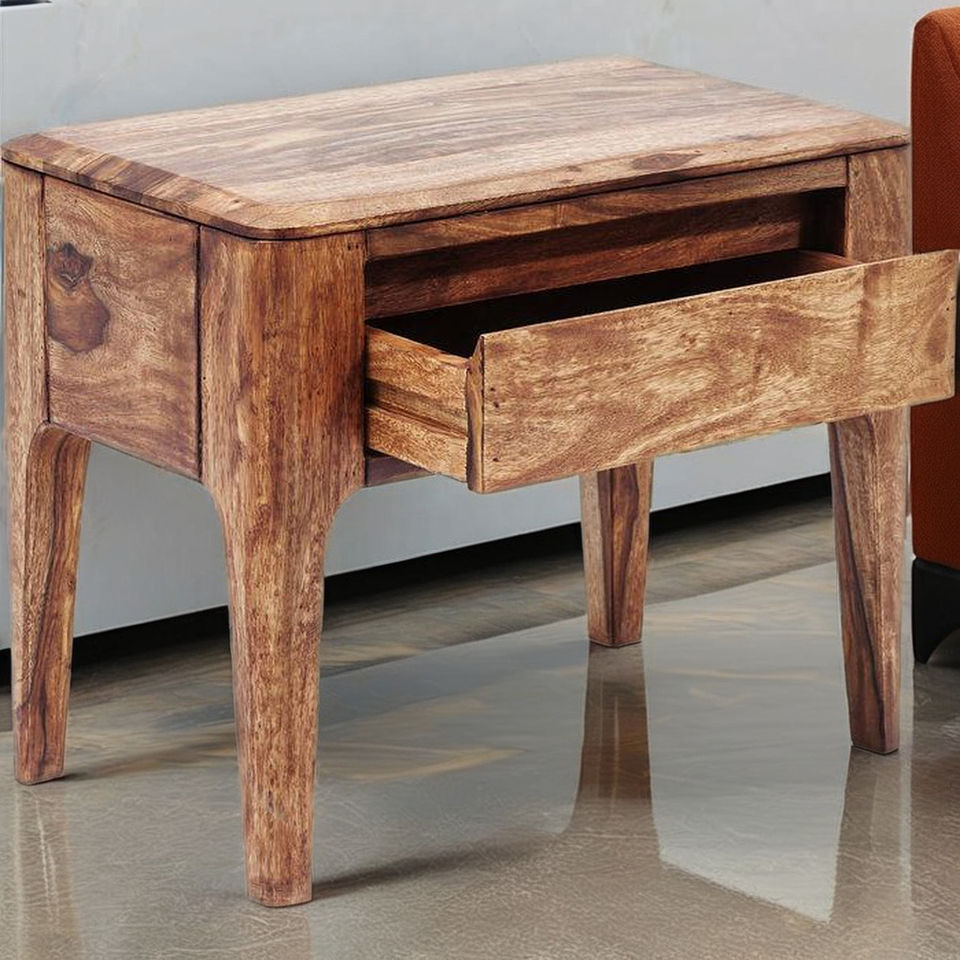 Mesita de noche individual moderna sólida con cajón elegante espacioso Grano de madera natural Conjunto resistente para uso en dormitorio Apartamentos Hoteles