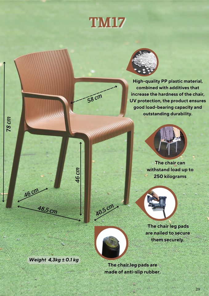 Silla de Plástico Moldeado Sólido con Diseño de Onda (con Reposabrazos) - Cómoda, Impermeable y Moderna