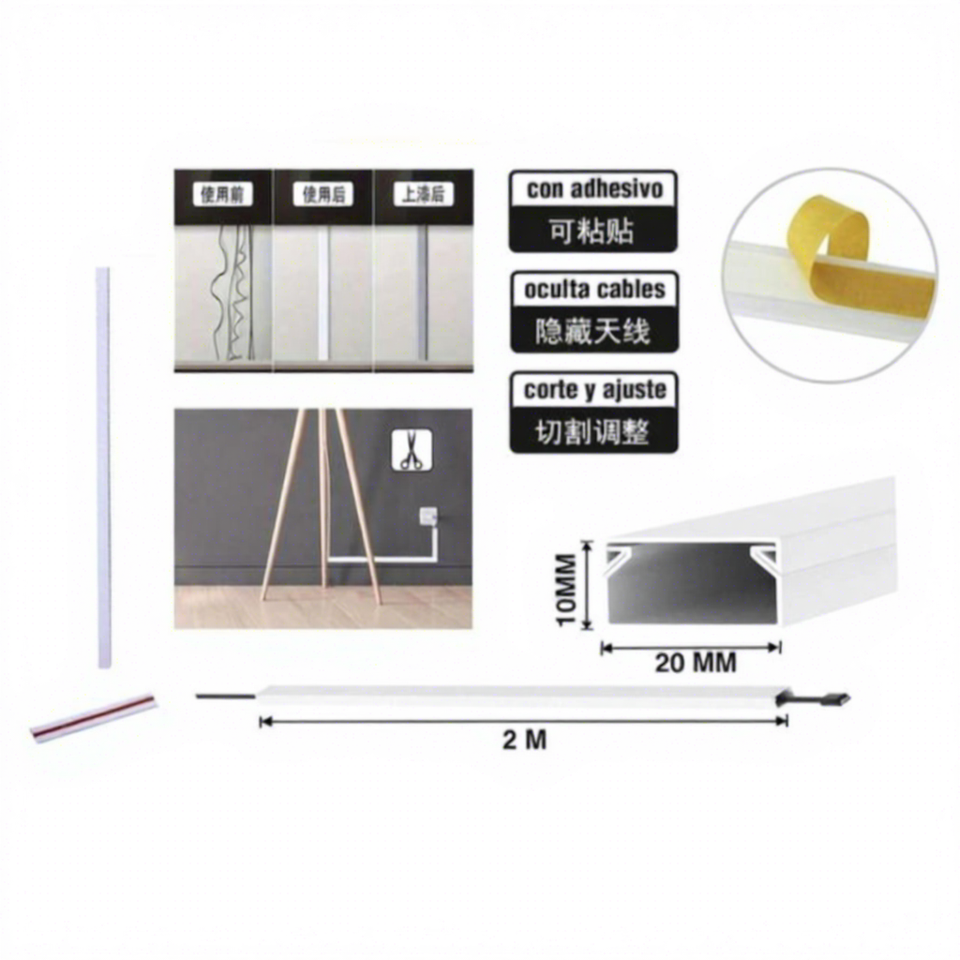 Ducto para Cables Adhesivo Blanco de PVC Sólido 20*10*9mm*2m Accesorios de Ferretería Material Plástico Modelo 8445542048042