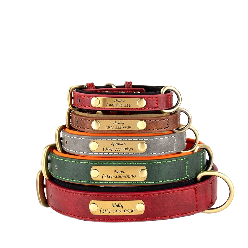 Collar de perro antipérdida de patrón sólido con cintas decoradas con grabado láser para perros pequeños y medianos, cinta de cuero para Collar de perro
