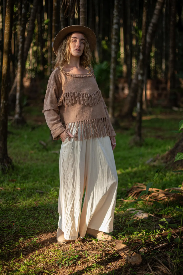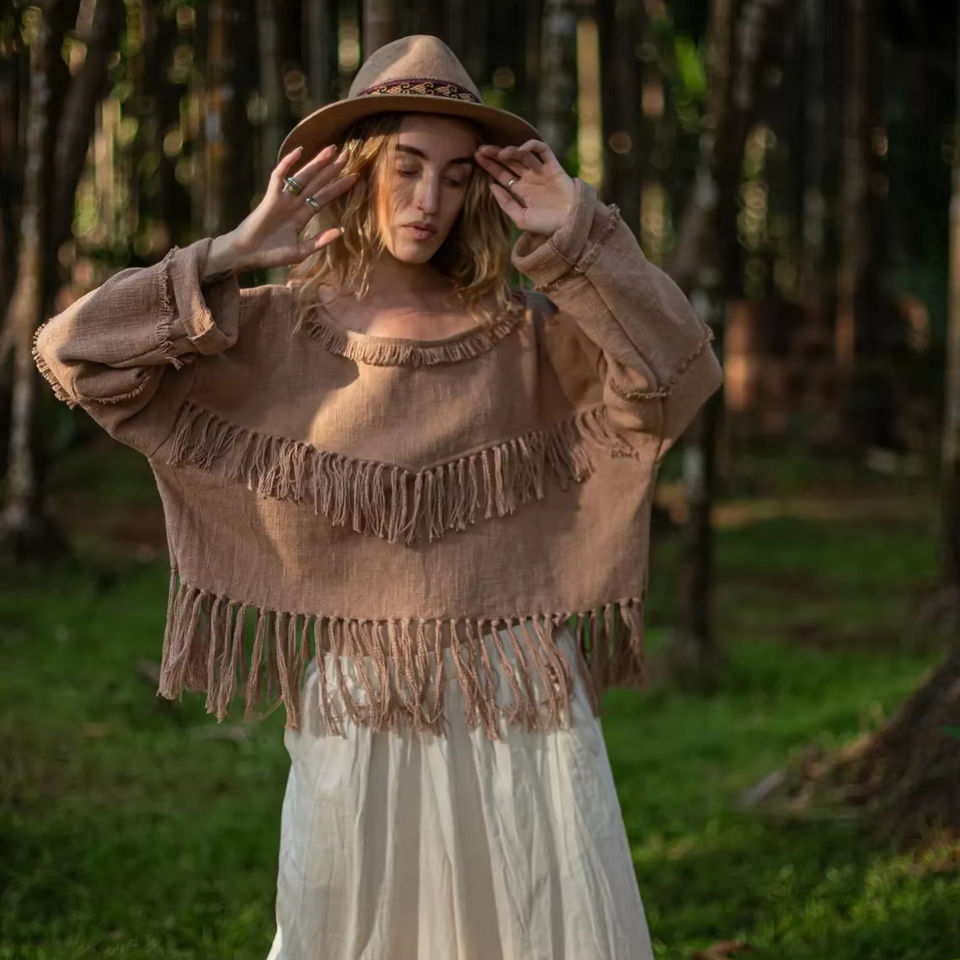 Cárdigan de manga larga bohemio con patrón liso, blusa con flecos, suéter de algodón transpirable para ropa de fiesta informal, mangas sin mangas con logotipo frontal