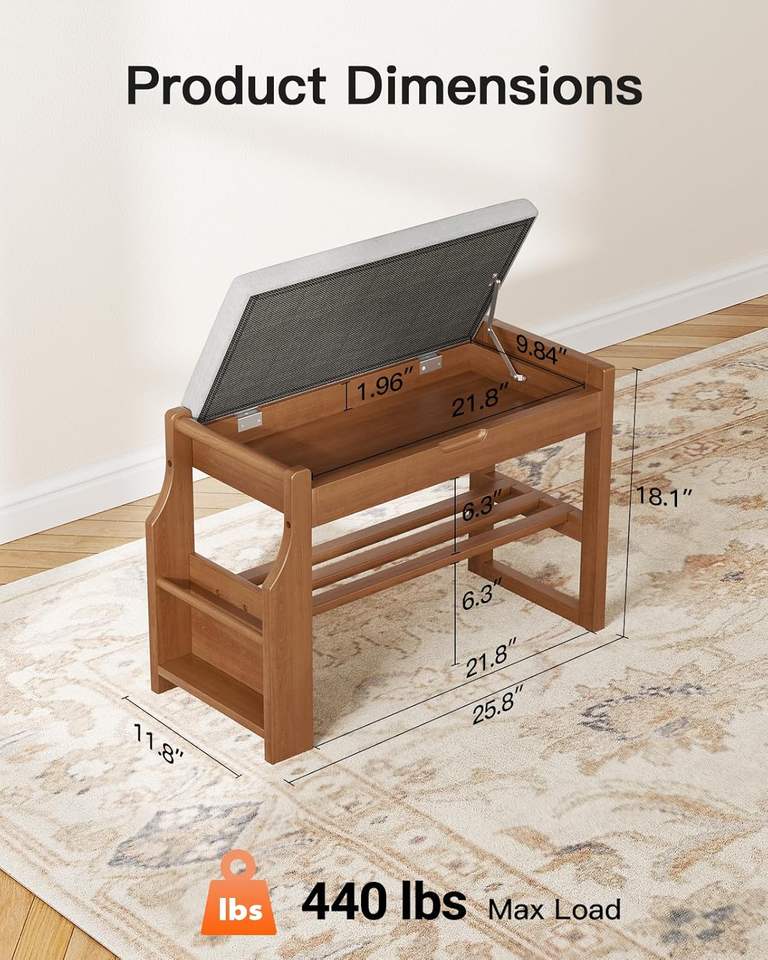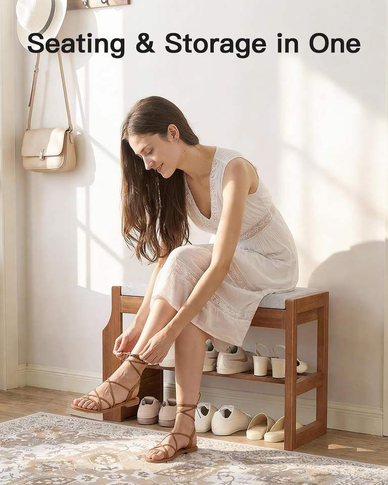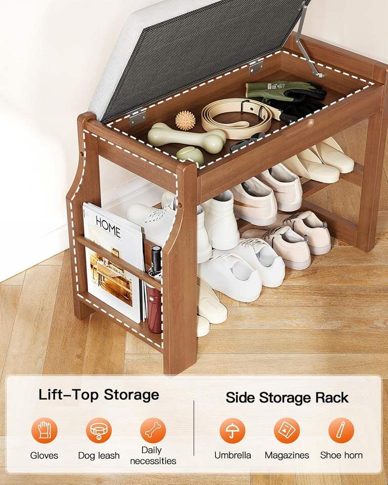 Banco zapatero moderno de madera de pino maciza con cojín suave, almacenamiento de 2 niveles y tapa elevable para recibidor, pasillo, dormitorio y sala de estar