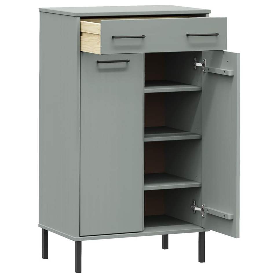 Zapatero de Madera de Pino Sólido en Gris con Estructura Metálica de Capacidad Media